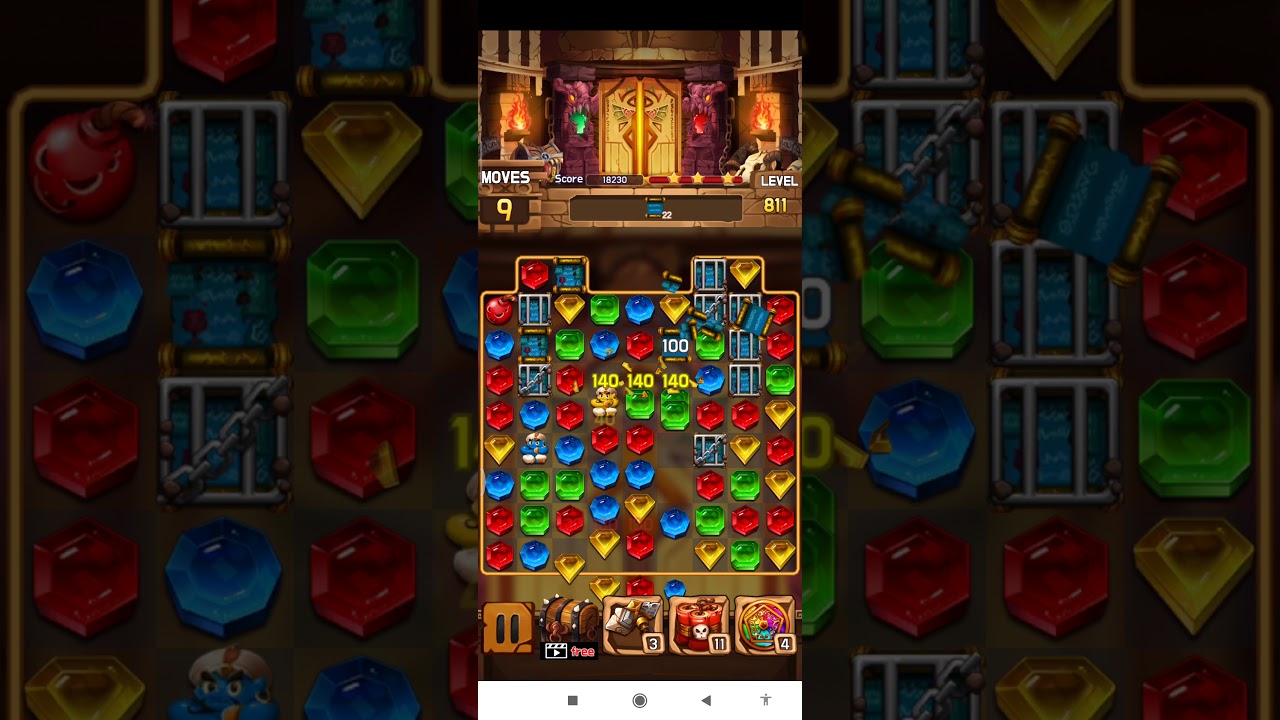 Here you see Stage 811 of the game Jewel Legacy (a three wins game), which you can play an app game for example on Android or directly on Facebook.