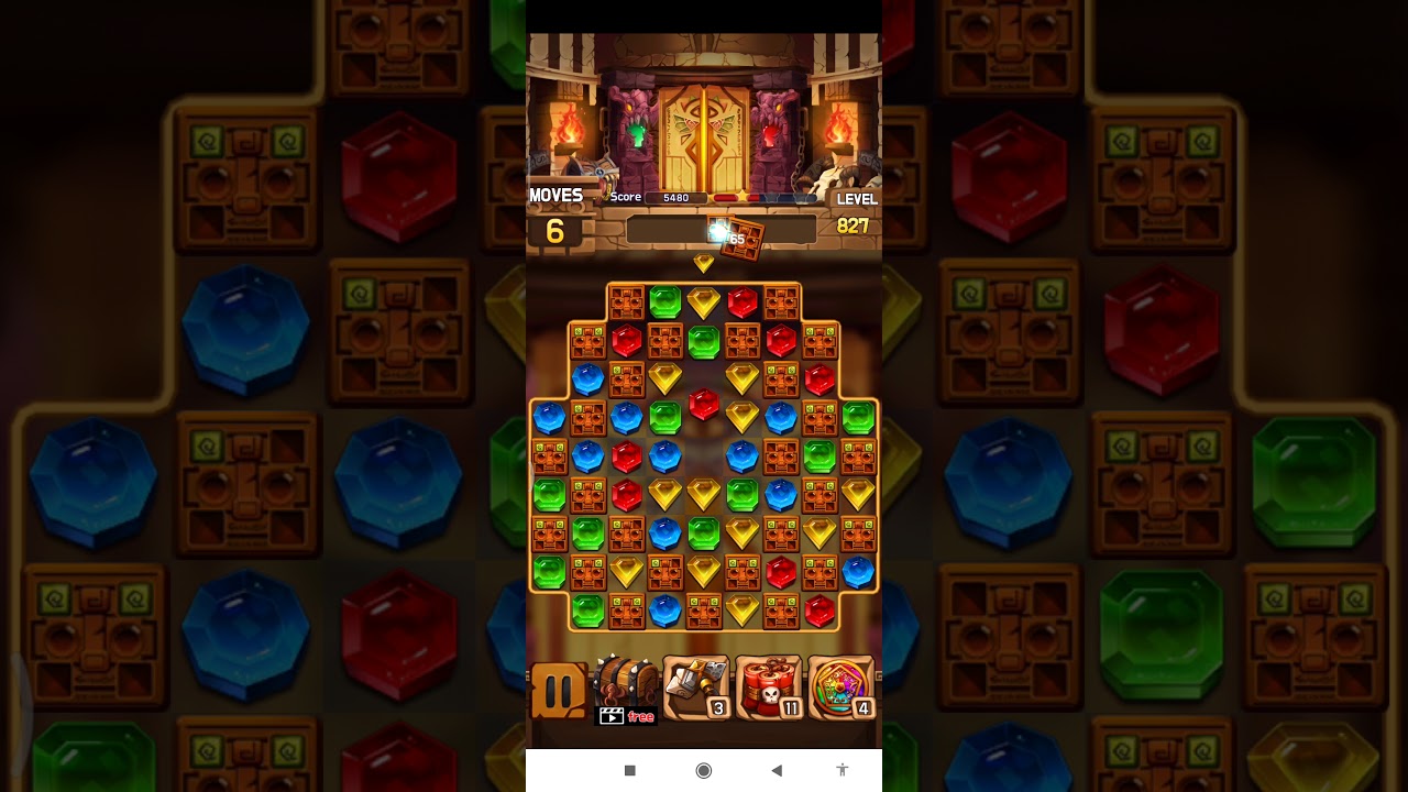 Here you see Stage 827 of the game Jewel Legacy (a three wins game), which you can play an app game for example on Android or directly on Facebook.