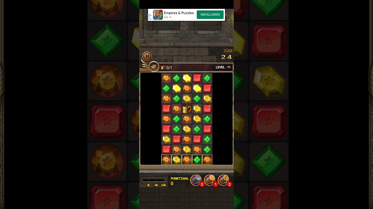 Here you see Stage 11 of the game Jewels Temple-Quest (a three wins game), which you can play an app game for example on Android or directly on Facebook.